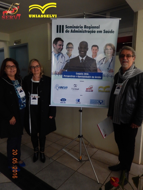 No dia 20 de maio, ocorreu nas dependências da Fundasul, o III Seminário Regional de Administração em Saúde, com o tema \"Perspectivas e Oportunidades na Gestão\", no qual a Servi - Polo Uniasselvi, a Fundasul e o Hospital Nossa Senhora Aparecida se unem para proporcionar este evento bienal aos acadêmicos e comunidade em geral. O evento contou com a presença de autoridades como o Prefeito de Camaquã, Sr. João Carlos Machado; o vice-prefeito, Prof. Paulo Meca; a secretária da cultura e turismo de Camaquã e presidente da Fundasul, Profª Marla Crespo; o superintendente do Hospital Nossa Senhora Aparecida, Sr. Antonio Omar Machado, a diretora de ensino da Servi e coordenadora do Polo Uniasselvi, Profª Iara Schmegel e demais autoridades presentes. As palestras foram ministradas pelo Prof. Fabrizio Rosso, fator RH de São Paulo; Economista Ricardo Englert, diretor financeiro e planejamento do complexo hospitalar Santa Casa de Porto Alegre; Dr. Fernando Starosta de Waldemar, médico e presidente da Sociedade Brasileira de Medicina Hospitalar; Engenheiro Carlos Eduardo Aranha, gerente da Unitec/Unisinos; Contadora Silvana Scherer Vieira, Delegada Regional - CRC/RS; Administrador Glauco Samuel Chagas, administrador e superintendente executivo Unimed Porto Alegre. Durante os intervalos ocorreram apresentações artísticas, como dança do ventre e ginástica laboral com a turma do curso de educação física da Faculdade Fundasul. Em 2018 o evento ocorrerá na Servi - Polo Uniasselvi.