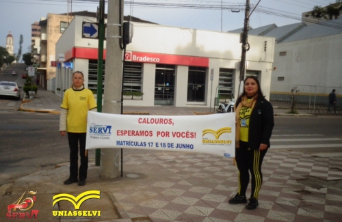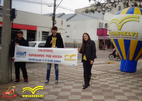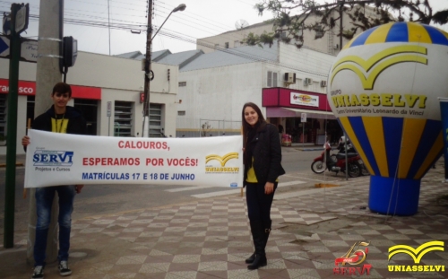 Ocorreu na manhã de 04 de junho, na esquina democrática, localizada no centro de Camaquã, a divulgação do Edital 2016/2, no qual a equipe da Servi - Polo Uniasselvi se reuniram para distribuir folders, cartazes no comércio e conversar com as pessoas referente ao ensino EAD, cursos, matrículas e demais dúvidas e interesses. Agradecemos ao empenho de todos e esperamos por vocês, calouros para as matrículas que ocorrerão 17 e 18 de junho, na Servi, localizado na Rua Acindino Inácio Dias, 843.