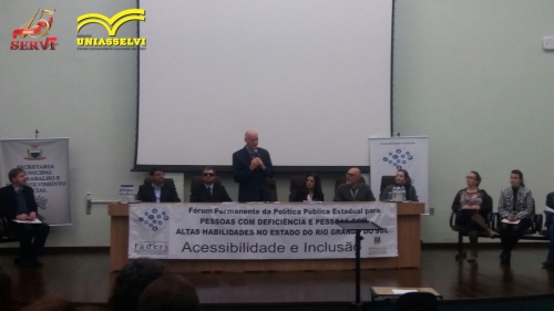 No dia 30 de agosto, ocorreu no Ifsul Campus Camaquã, o 144º Fórum Permanente da Política Pública Estadual para Pessoas com Deficiência e Pessoas com Altas Habilidades, a articuladora EAD da Servi - Centro Universitário Leonardo da Vinci - Uniasselvi, Luciana Soares Dummer representou nossa IES, o palestrante do evento foi o Sr. Roque Bakof, Presidente da Faders, a abertura ocorreu com a belíssima apresentação teatral da APAE de Camaquã.