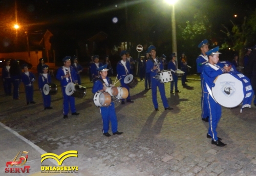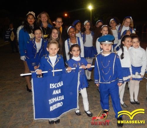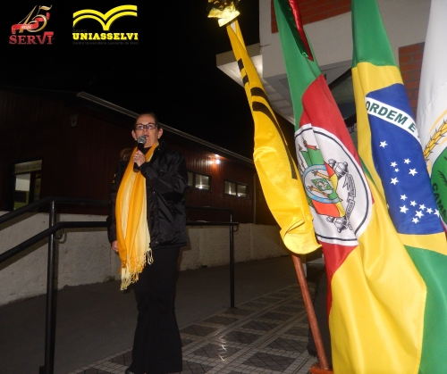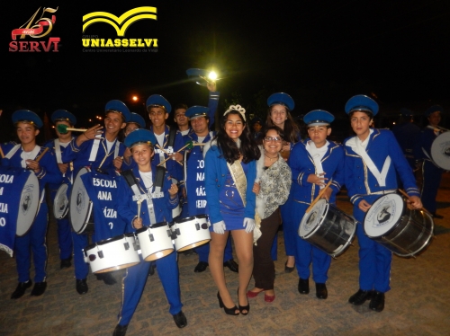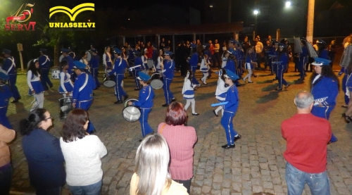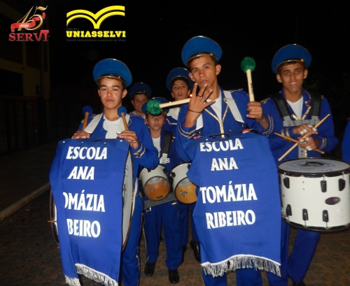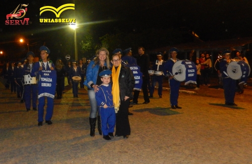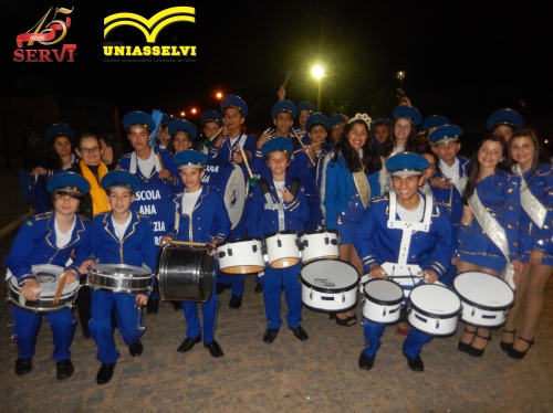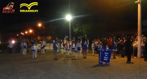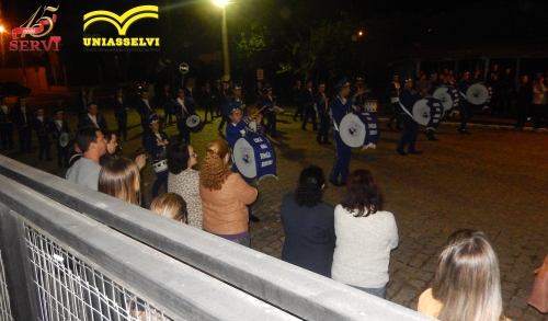Na noite de 01 de setembro, em frente do prédio da Servi Polo do Centro Universitário Leonardo da Vinci – Uniasselvi, ocorreu a apresentação da Banda Marcial da Escola Municipal de Ensino Fundamental Ana Tomázia Ribeiro, do Bairro Carvalho Bastos, no qual abriram as atividades da semana da pátria no Polo, a banda está completando seus 15 anos e abrilhantaram nossa noite com a apresentação comandada pelo Mor Hiallon de Abreu Mendes, instrutor musical Marcelo Wenske, coreógrafa e professora Viviane Garcia, também tutora da Uniasselvi – Servi Camaquã. A diretora e coordenadora Iara Schmegel fez o agradecimento especial em nome de toda a comunidade acadêmica entregando um de seus livros para a diretora Teresa Medeiros, após entoamos o Hino Nacional e nos despedimos desta atividade.