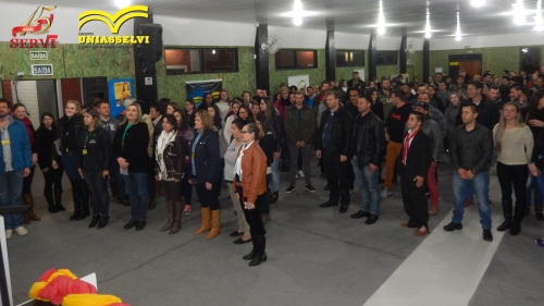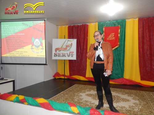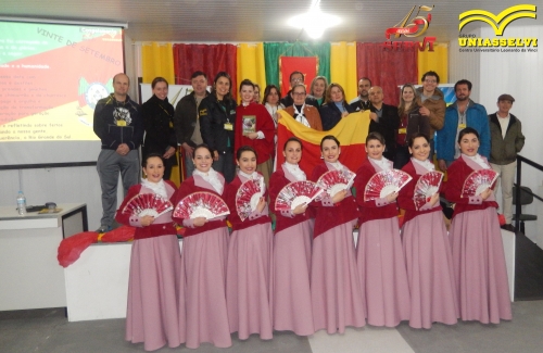 Na noite de 14 de setembro, no Espaço de Cultura do Grupo Servi – Centro Universitário Leonardo da Vinci – Polo Uniasselvi, ocorreu a abertura da Semana Farroupilha, o início deu-se com a poesia “Vinte de Setembro”, de nossa querida Diretora de ensino, Coordenadora e Poetisa Iara Schmegel, no qual a colaboradora Carla Santana declamou aos acadêmicos e tutores presentes e após entoamos o Hino Rio-grandense, a articuladora pedagógica Fabiane dos Santos e os tutores André Farias e Alexandre Souza convidaram as pessoas para participarem da II Copa Universitária, que acontecerá no dia 12 de outubro e para finalizar o Grupo Mulheres Gaúchas, da cidade de Cristal, encerraram esta noite com uma maravilhosa apresentação artística.