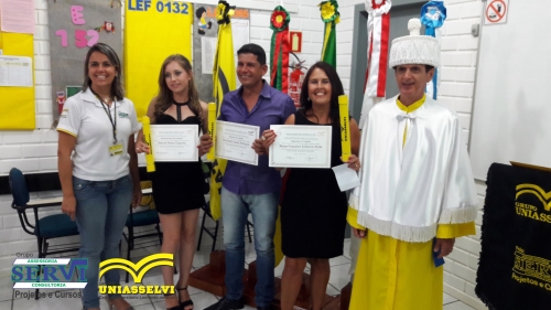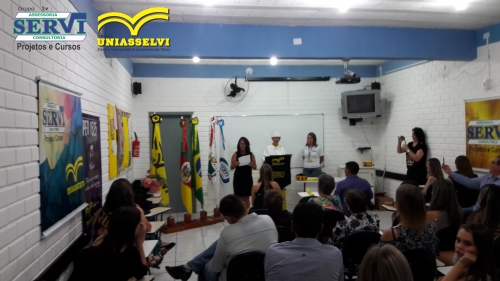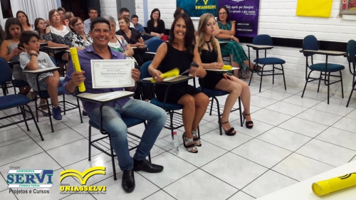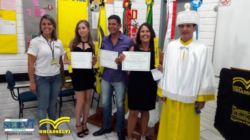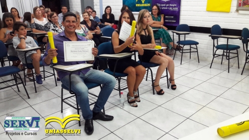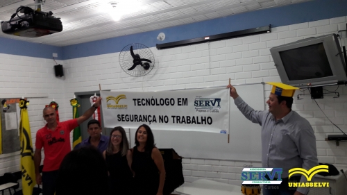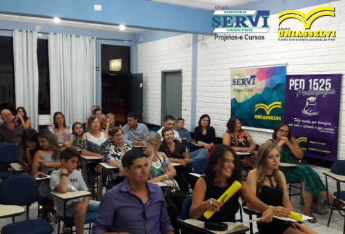 Ocorreu na noite de 27 de janeiro de 2017, a formatura em sessão especial dos cursos de tecnólogo em Recursos Humanos e Segurança no Trabalho, da Servi Polo do Centro Universitário Leonardo da Vinci – Uniasselvi. A cerimônia foi realizada pelo Diretor do Polo Carlos Lucindo Moreira, pela articuladora pedagógica Fabiane dos Santos e a tutora do curso de Segurança no Trabalho Anielca Iribarrem Mattos. Parabenizamos os nóveis formados e desejamos muito sucesso.