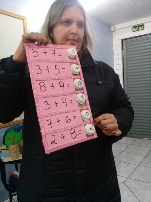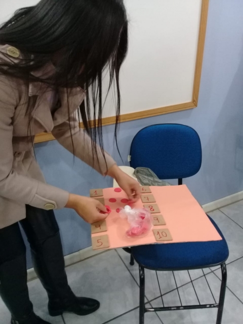 A turma PED 1790 com atividades práticas de matemática acompanhadas, pela Professora Letiane Lemes.
